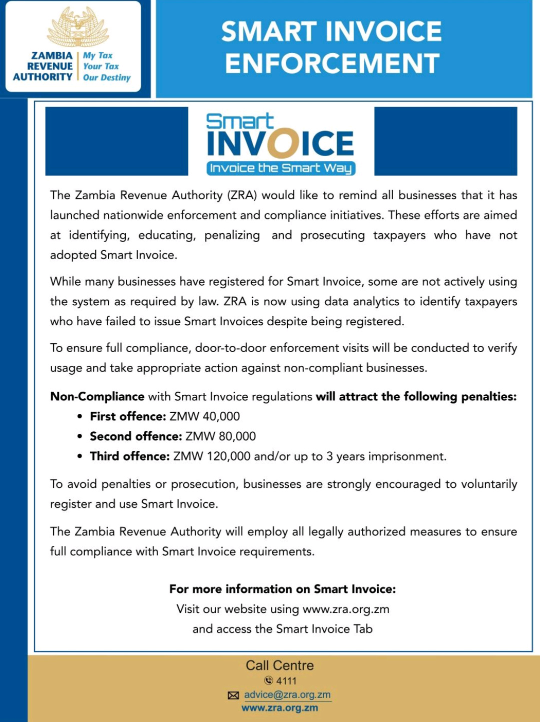 The Zambia Revenue Authority (ZRA) has officially ramped up the enforcement of smart invoicing.
